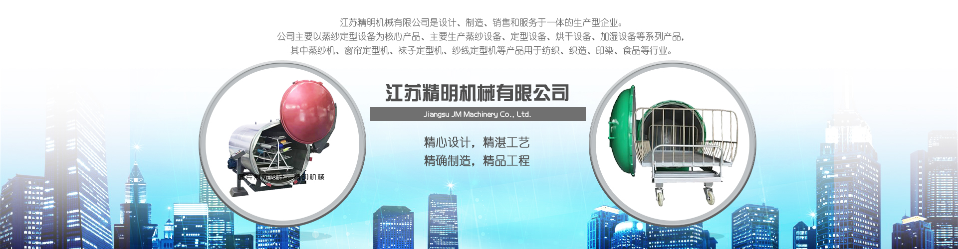 江蘇精明機(jī)械有限公司是設(shè)計、制造、銷售和服務(wù)于一體的型企業(yè)。公司主要以蒸紗定型設(shè)備為核心產(chǎn)品、主要蒸紗設(shè)備、定型設(shè)備、烘干設(shè)備、加濕設(shè)備等系列產(chǎn)品,其中蒸紗機(jī)、窗簾定型機(jī)、襪子定型機(jī)、紗線定型機(jī)等產(chǎn)品用于紡織、織造、印染、食品等行業(yè)。主要經(jīng)營包括:1、蒸紗設(shè)備:蒸紗機(jī)、蒸紗箱、蒸紗缸、蒸紗鍋、蒸紗小樣機(jī)等2、定型設(shè)備:窗簾定型機(jī)、襪子定型機(jī)、圍巾定型機(jī)、手套定型機(jī)、紗線定型機(jī)、低彈絲定型機(jī)、丙綸絲定型機(jī)等3、烘干設(shè)備:布料烘干機(jī)、拉幅烘干機(jī)、染整烘干機(jī)等4、加濕設(shè)備:棉紗加濕機(jī)、氣流紡?fù)布喖訚?..